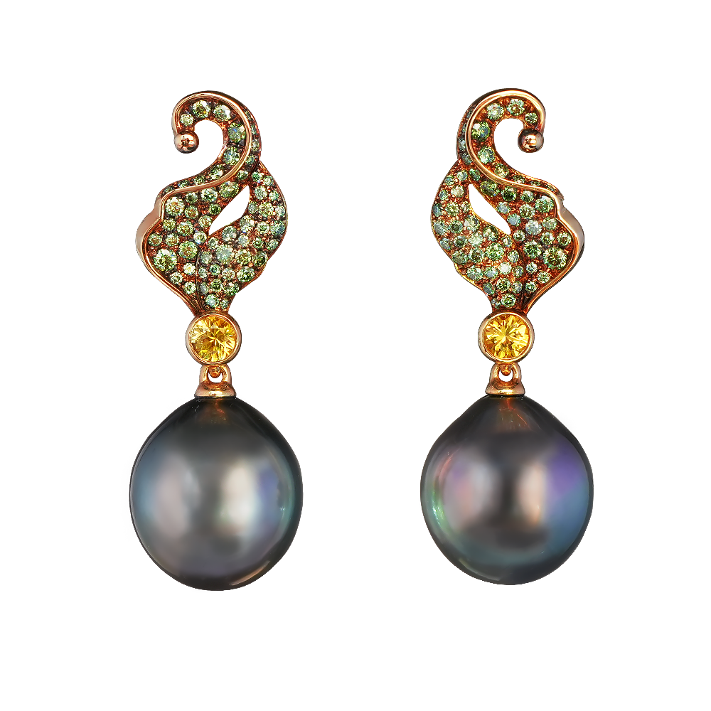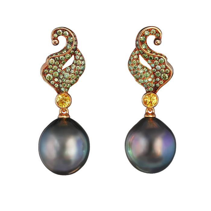 2 dark pear-shaped pearls 14.4*12.8 mm